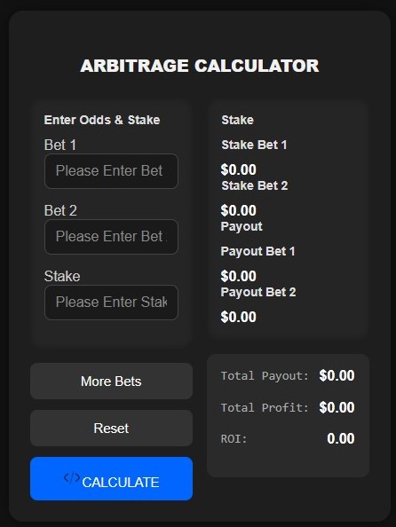 The arbitrage calculator helps you work out how much to bet on each side to make a sure profit. If the result shows a negative number, it means you would lose money instead.
